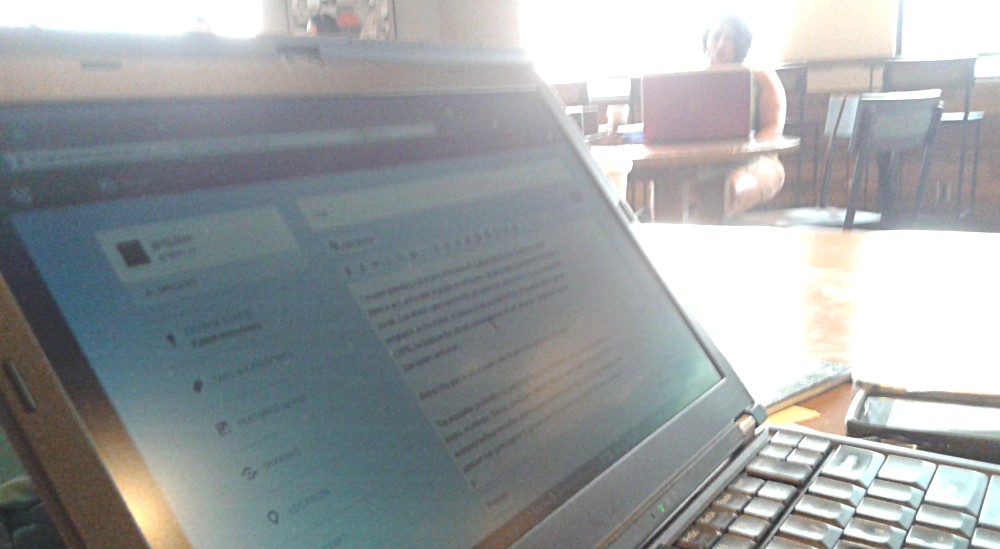 I’ve been spending a lot of time in the local (St. Catharines) 24-hour Starbucks, where there is wi-fi and a constant slew of people, students to retirees, most with computers, banging away at assignments or blogs or novels or who-knows-what.